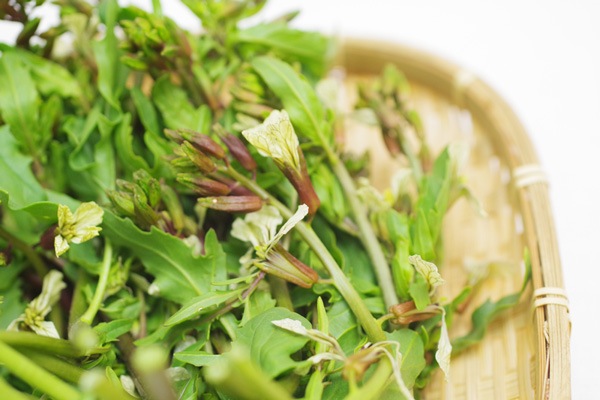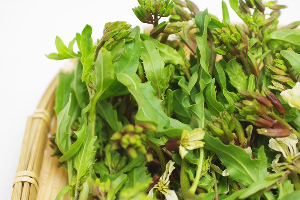 ルッコラもアブラナ科のお野菜で、成長すると菜の花ができます。しっかりとルッコラの風味がし、サラダにしても美味しいです。辛いと感じる場合はサッと湯がいていただくと食べやすくなります。
