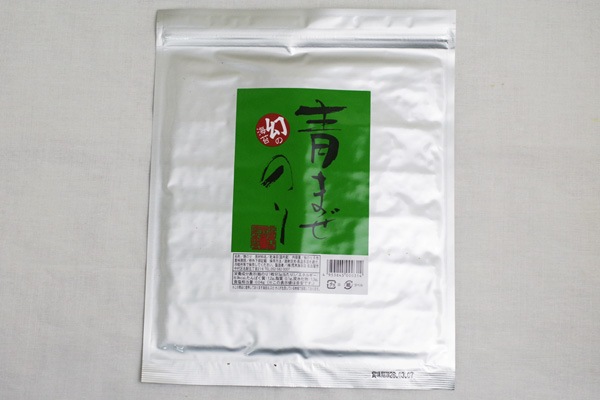 青混のりは青のりのほろ苦さと香りがほんのりする海苔です。もちん、そのまま食べても美味しいですが、何かと組み合わせても最高に美味しく食べることができます。