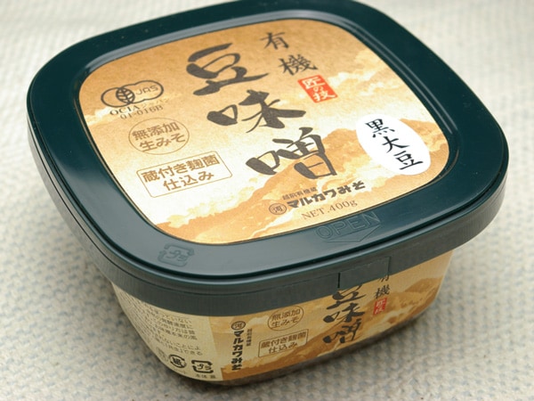 商品名 黒大豆豆味噌 原材料 大豆(無肥料・自然栽培)、食塩 製造元 マルカワみそ株式会社 内容量 400g 賞味期限 2017年5月26日 保存方法 直射日光を避け、冷暗所保管して下さい。 ※本品は無農薬・無肥料の原材料を使用しておりますが、無施肥無農薬栽培の認証をとったものではありませんので、『無施肥無農薬栽培』の表示をしておりません。
